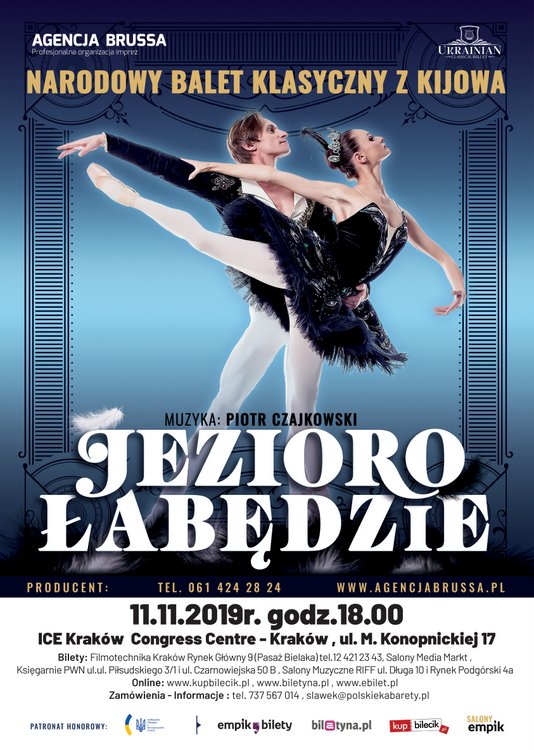 Narodowy Balet Kijowski zaprasza już 11 listopada do ICE Kraków Congress Centre Kraków ul. M. Konopnickiej 17 na Widowisko Baletowe Jezioro Łabędzie Klasyka Światowego Baletu blisko 50 osób na scenie.