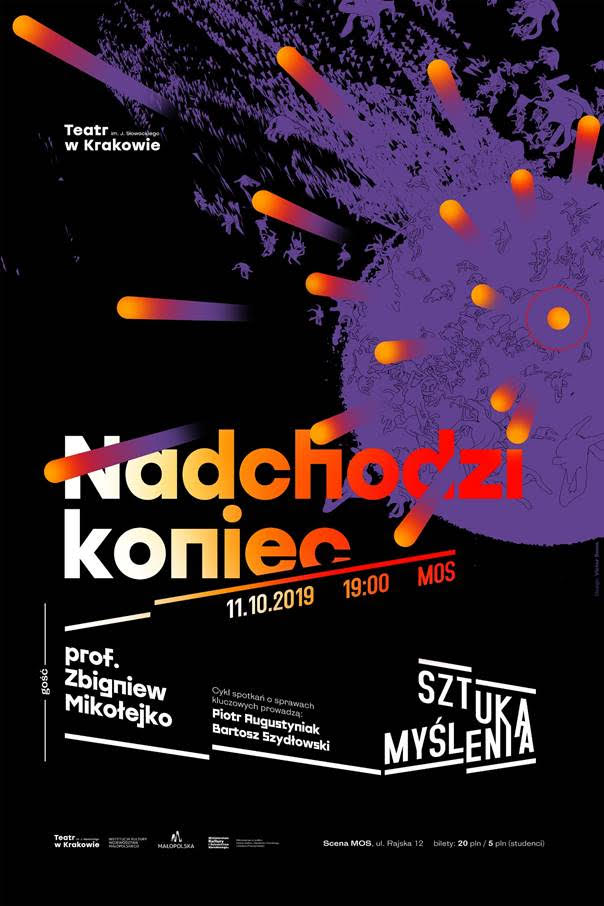 Spotkanie otwiera nowy sezon Sztuki Myślenia, zatytułowany „Koniec świata”. W jego ramach będziemy pytać o różne wymiary grożącej światu katastrofy. Będziemy chcieli zrozumieć jej powody. Zastanowić się, jak żyć i co robić w obliczu końca, który nadchodzi. A może wcale nie nadchodzi i są to tylko strachy na Lachy?