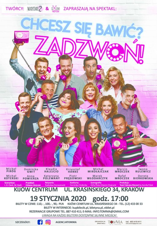 Światowa premiera sztuki „CHCESZ SIĘ BAWIĆ? ZACZWOŃ!” to prawdziwa uczta pełna zwrotów akcji, barwnych postaci i świetnego humoru spędzonego w towarzystwie gwiazd!