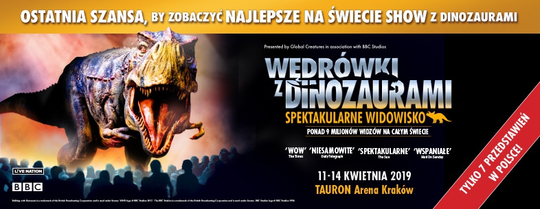 WĘDRÓWKI Z DINOZAURAMI – SPEKTAKULARNE WIDOWISKO powraca! Przedstawienie widziało już ponad 9 milionów osób w przeszło 250 miastach na całym świecie. Będziecie zdumieni i podekscytowani, gdy na własne oczy zobaczycie najwspanialsze stworzenia, które zamieszkiwały Ziemię.