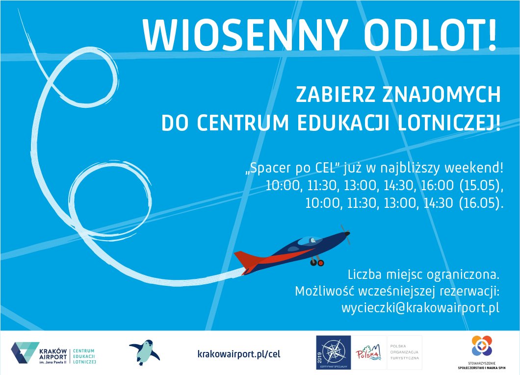 Już od najbliższego weekendu Centrum Edukacji Lotniczej Kraków Airport powraca do działalności stacjonarnej! Z tej okazji przez cały weekend CEL zaprasza na „Spacer po CEL”, czyli ekscytującą wycieczkę po jedynym w Polsce ośrodku popularyzującym wiedzę z zakresu lotnictwa cywilnego.