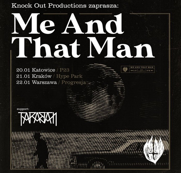 Knock Out Productions będzie organizatorem trzech koncertów tej trasy, kolejno: 20 stycznia w katowickim P23, 21 stycznia w krakowskim Hype Parku oraz 22 stycznia w klubie Progresja w Warszawie. Gościem specjalnym występów Me And That Man będzie krakowska grupa Taraban.