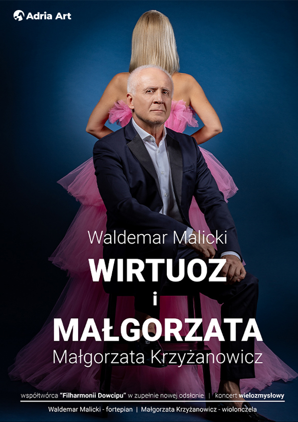 Zapraszamy na niezwykły koncert duetu Waldemara Malickiego i Małgorzaty Krzyżanowicz, który przeniesie Cię w świat sztuki i muzycznego ukojenia. Waldemar Malicki, ikona polskiej pianistyki i frontman legendarnej Filharmonii Dowcipu, po raz kolejny udowodni, że fortepian potrafi być nie tylko instrumentem, ale również źródłem głębokiego wytchnienia.