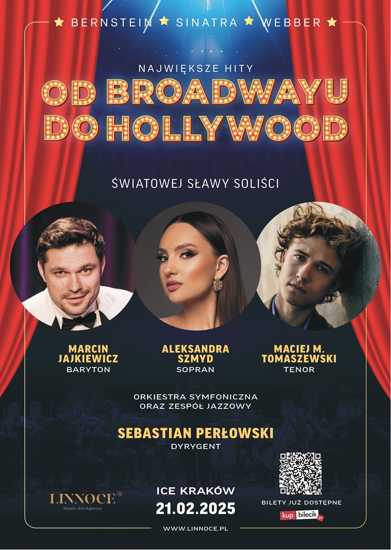 Zapraszamy na wyjątkowy koncert "Od Broadwayu do Hollywood - Największe Hity!", który zabierze Cię w niezapomnianą podróż przez najwspanialsze przeboje Broadwayu i złote melodie Hollywood. Przygotuj się na wieczór pełen emocji i muzycznych uniesień na najwyższym poziomie!