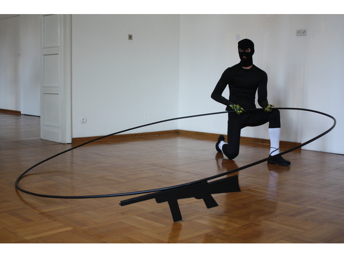 Na wystawie prezentujemy trzy instalacje: Wielorównaniowy model sprawy Iana Rossa Baughmana, Rewitalizacja „Błędnego koła” Jacka Malczewskiego (Kolekcja MOCAK-u) oraz Le danse macabre de terrorisme. Najważniejszym aspektem prac Marcina Berdyszaka jest postać ludzka, kontekstualizowana poprzez strój, pozycję, rekwizyty i otoczenie. Powiązania między dwoma pierwszymi dziełami są budowane za pomocą wykorzystanych w nich manekinów. Tematem trzeciej pracy jest dialog, jaki człowiek – terrorysta – nawiązuje z przedmiotem.