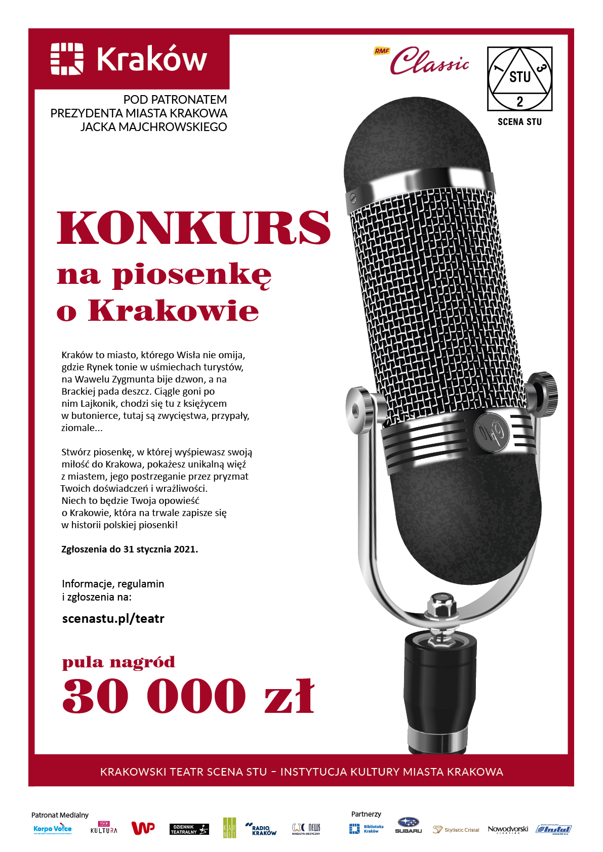 Dobra wiadomość dla wszystkich spóźnialskich i zapominalskich. Termin zgłoszeń utworów w Konkursie na Piosenkę o Krakowie zostaje przedłużony do 31 stycznia 2021 roku.