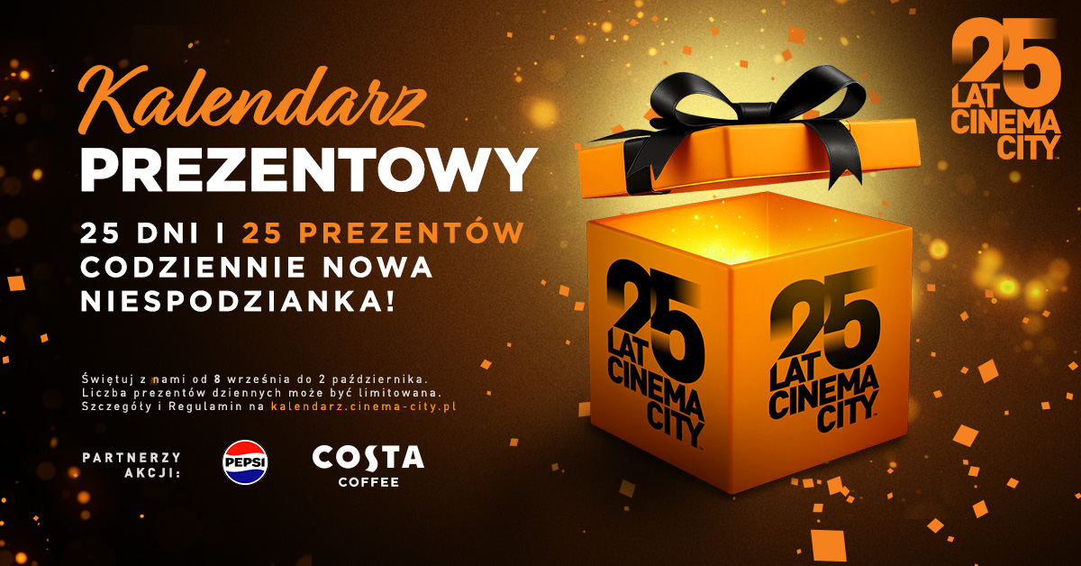 By dzielić się magią kina z innymi, sieć kin przygotowała także aktywację konsumencką pod nazwą: kalendarz prezentowy. Tym samym postanowiła z okazji urodzin rozdać prezenty swoim klientom, bo to oni grają tutaj główną rolę. Rozpoczynając 8 września, przez 25 kolejnych dni, w kalendarzu prezentowym pojawiać się będą niespodzianki z okazji 25 urodzin Cinema City. W tajemniczym prezencie codziennie znaleźć będzie można dedykowane rabaty, ekskluzywne materiały wideo, treści promocyjne, czy prezenty bazujące na sprzedaży premiowej. Kalendarz dostępny jest na stronie: https://kalendarz.cinema-city.pl/ , a partnerami akcji są Pepsi oraz Costa Coffee.