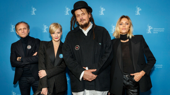 Mariusz Wilczyński z obsadą filmu: Andrzejem Chyrą, Małgorzatą Kożuchowską i Anją Rubik podczas premiery na tegorocznym Berlinale