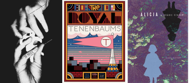 Wybrane prace Smitha: plakaty do filmów „Mistrz" oraz „Genialny klan"; okładka książki „Alicja w krainie czarów"