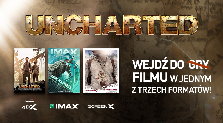 18 lutego w Cinema City pojawi się Uncharted – film, którego fanom gier komputerowych nie trzeba przedstawiać. Nathan Drake zdominuje w Cinema City wszystkie formaty kinowe – wrażenia z seansów w IMAX, 4DX czy ScreenX mogą być porównywalne z osobistym uczestnictwem w grze.