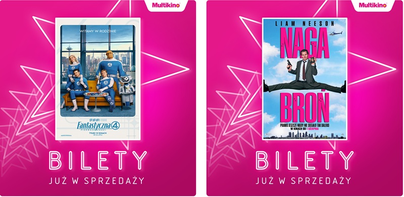 Multikino rozpoczęło przedsprzedaż biletów premiery filmów z końca lipca i początku sierpnia -„Fantastyczną Czwórkę: Pierwsze kroki” i „Nagą broń” . Szczegółowy repertuar jest dostępny na stronie www.multikino.pl.