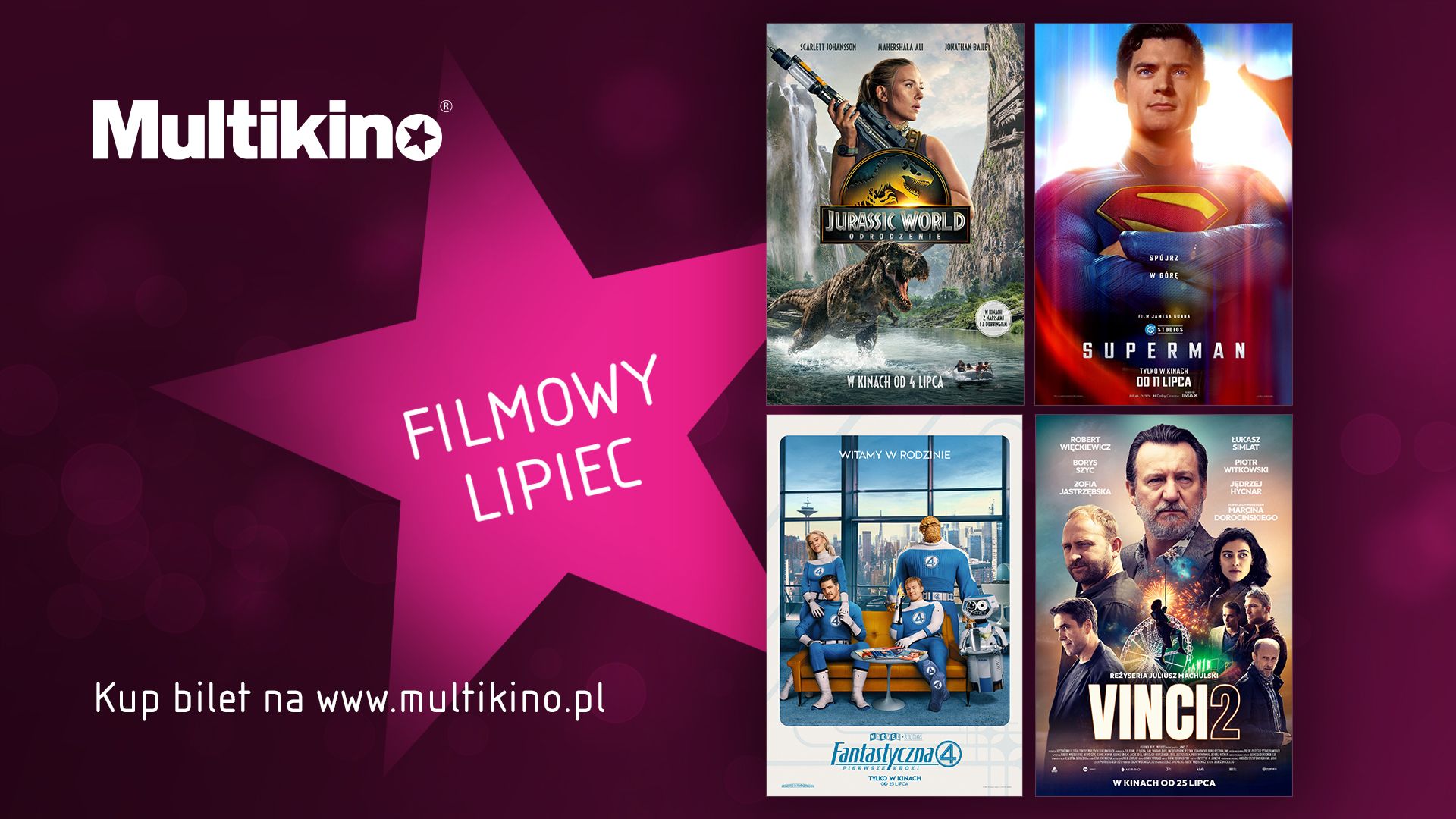 W kinach sieci Multikino każdy z widzów znajdzie coś dla siebie. Hity na nadchodzący miesiąc, to: „Jurassic World: Odrodzenie”, „Superman”, „Smurfy. Wielki film”, „Fantastyczna Czwórka: Pierwsze kroki” oraz „Vinci 2”. Szczegółowy repertuar jest dostępny na stronie www.multikino.pl.