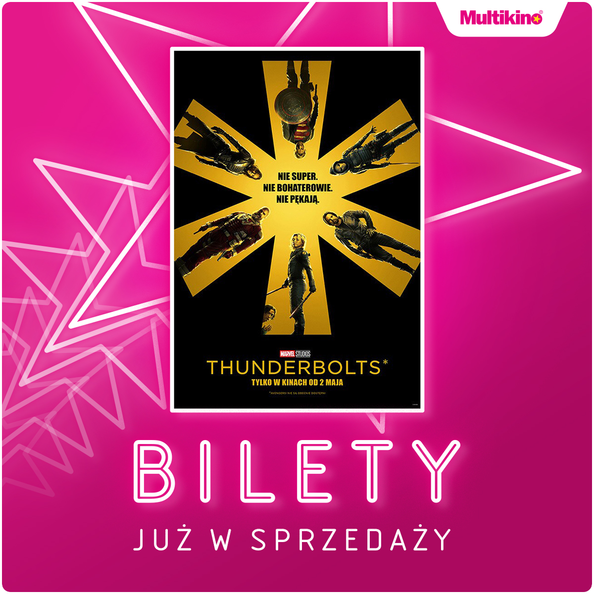 Już dzisiaj kupisz w Multikinie bilety na wyczekiwaną, majową premierę „Thunderbolts*”. Szczegółowy repertuar jest dostępny na stronie www.multikino.pl.