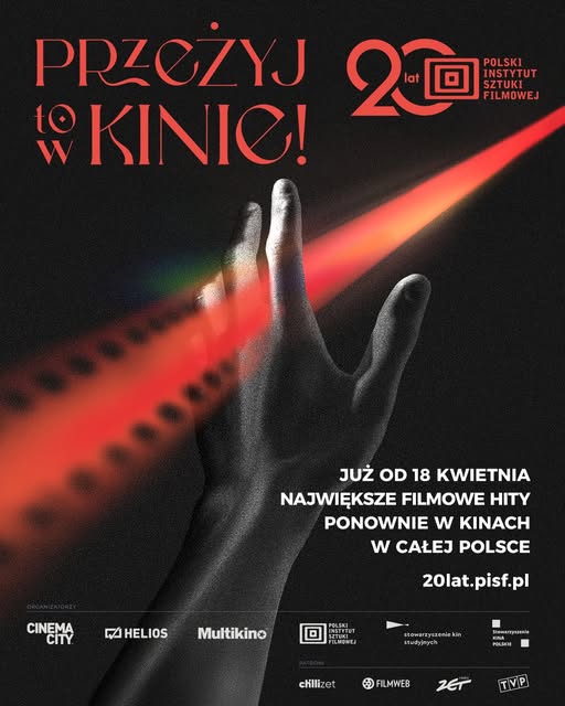 W tym roku Polski Instytut Sztuki Filmowej obchodzi swoje 20-lecie! Z tej okazji, we współpracy ze Stowarzyszeniem Kin Studyjnych, Polskim Stowarzyszeniem Kina Nowe oraz Stowarzyszeniem Kina Polskie, organizuje wyjątkową akcję pod hasłem „Przeżyj to w kinie. 20 lat z Polskim Instytutem Sztuki Filmowej”. W ramach tego wydarzenia do kin w całej Polsce powróci 20 wyjątkowych filmów współfinansowanych przez PISF, które podbiły serca widzów i polski box office.