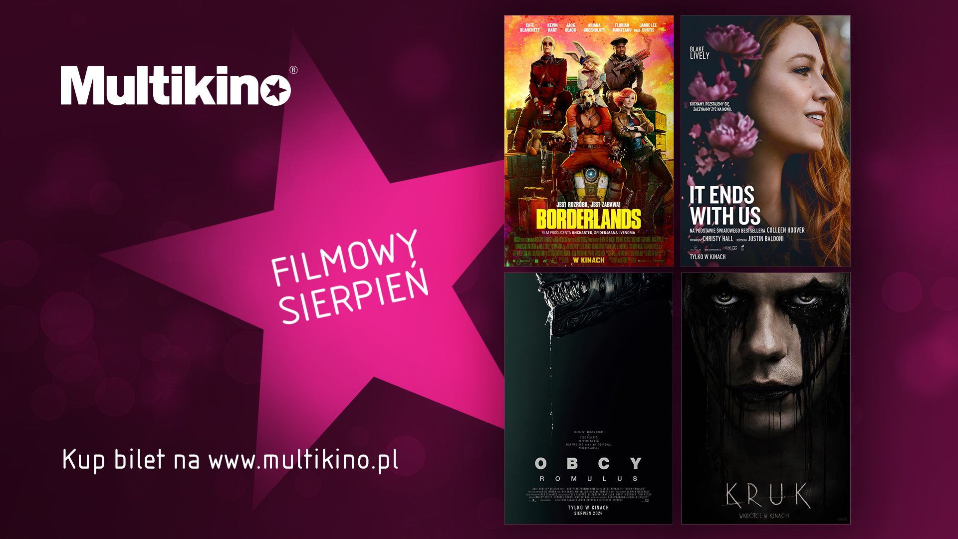 Wakacyjny okres to wspaniała okazja do spędzenia czasu z rodziną i przyjaciółmi i wybrania się na seans filmowy. W sierpniu na wielkim ekranie będzie można zobaczyć między innymi: „Borderlands”, „Motocykliści” z Austinem Butlerem, „I Ends With Us” z Blake Lively, „Obcy: Romulus” oraz „Kruk”. Szczegółowy repertuar jest dostępny na stronie www.multikino.pl.