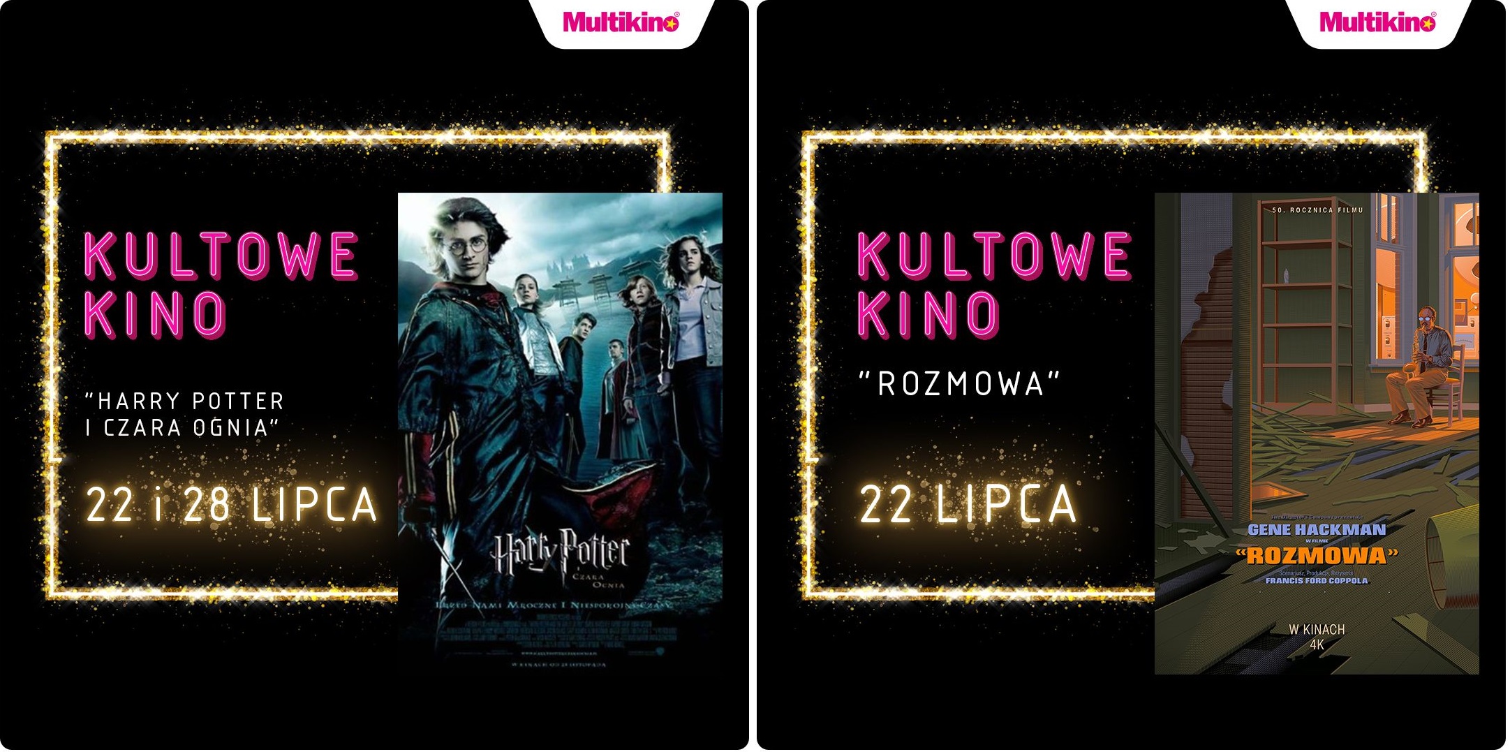 22 lipca w kinach sieci Multikino w ramach cyklu „Kultowe Kino” widzowie będą mogli zobaczyć o 17.30 film „Harry Potter i Czara Ognia” (powtórka w niedzielę 28 lipca), a o 20.00 „Rozmowę” w reżyserii Francisa Forda Coppoli. Bilety można już nabyć w kasach kin, na stronie internetowej www.multikino.pl oraz przez aplikację mobilną.