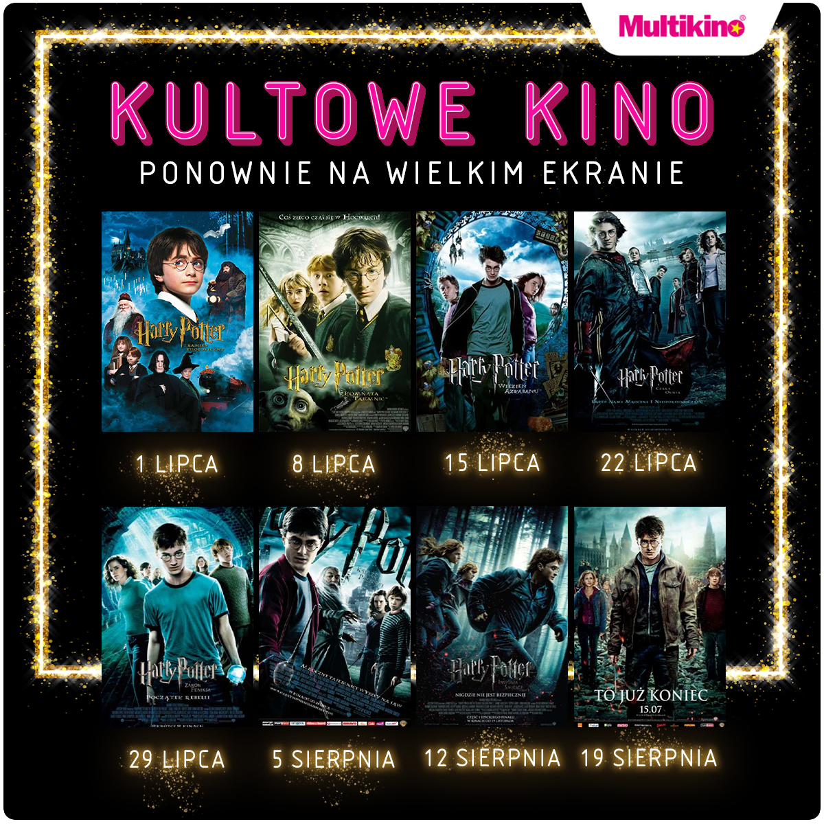 Podczas tegorocznych wakacji w kinach sieci Multikino będzie można zobaczyć wszystkie części „Harry’ego Pottera”! Bilety na lipcowe i sierpniowe pokazy można już nabyć w kasach kin, na stronie internetowej www.multikino.pl oraz przez aplikację mobilną.