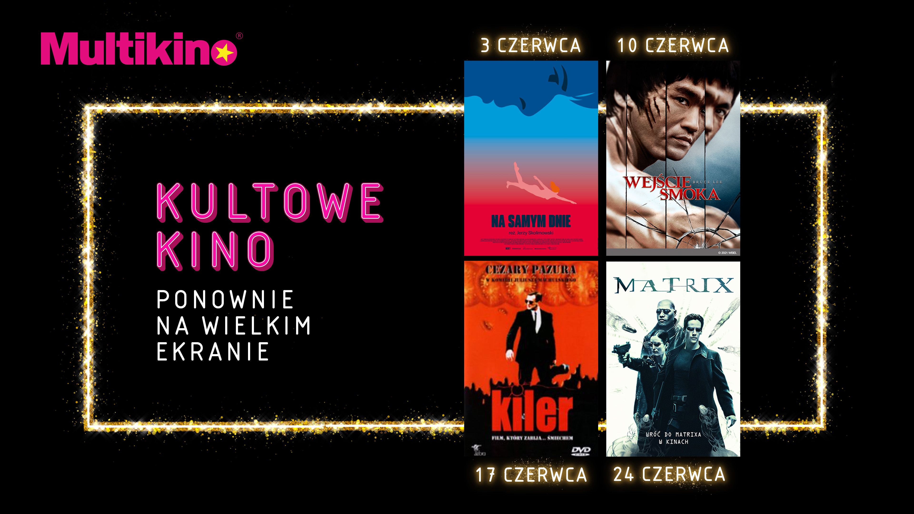 Widzów gotowych na coś więcej niż tylko film Multikino zaprasza w każdy poniedziałek nie tylko na seans, ale na przeżycie w ramach cyklu „Kultowe Kino”, które zostanie w pamięci na długo po wyjściu z sali. W repertuarze znajdą się: „Na samym dnie", „Wejście smoka", „Kiler" i „Matrix". Bilety na czerwcowe pokazy można już nabyć w kasach kin, na stronie internetowej www.multikino.pl oraz przez aplikację mobilną.
