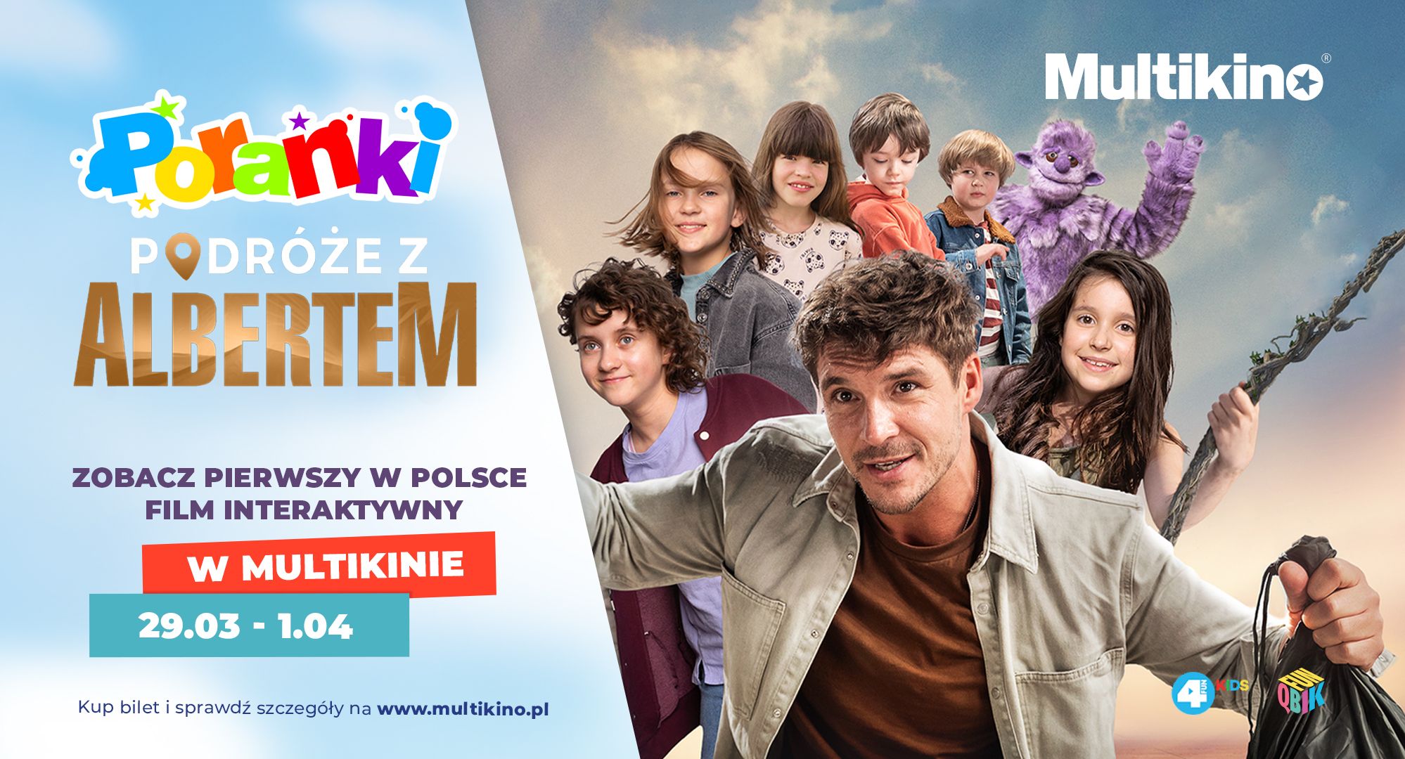 Takiego filmu jeszcze na dużych ekranach Multikina nie było! Od 29 marca do 1 kwietnia na najmłodszych kinomanów czeka wspaniała przygoda – „Podróże z Albertem”. Seanse odbędą się w wybranych kinach, a bilety już są dostępne w kasach, na stronie www.multikino.pl i w aplikacji mobilnej.