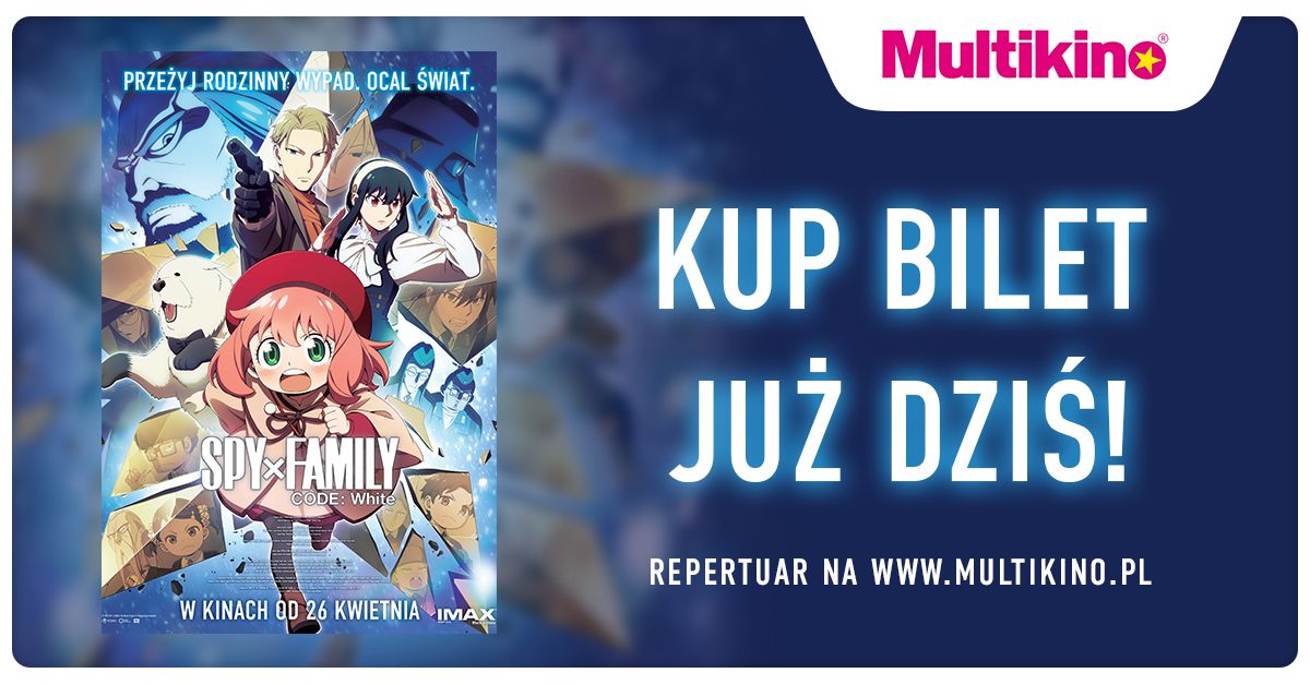 Multikino rozpoczęło przedsprzedaż biletów na film anime „Spy X Family Code: White" w reżyserii Kazuhiro Furuhashi. Produkcja wejdzie do kin 26 kwietnia i będzie można ją zobaczyć we wszystkich kinach sieci Multikino w Polsce. Bilety są dostępne w kasach kin sieci Multikino, na www.multikino.pl oraz w aplikacji mobilnej.