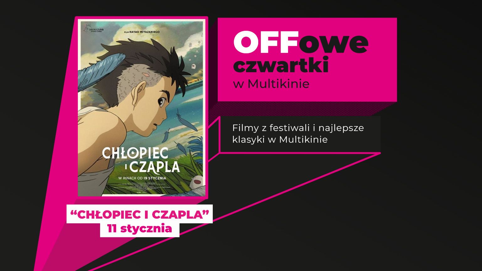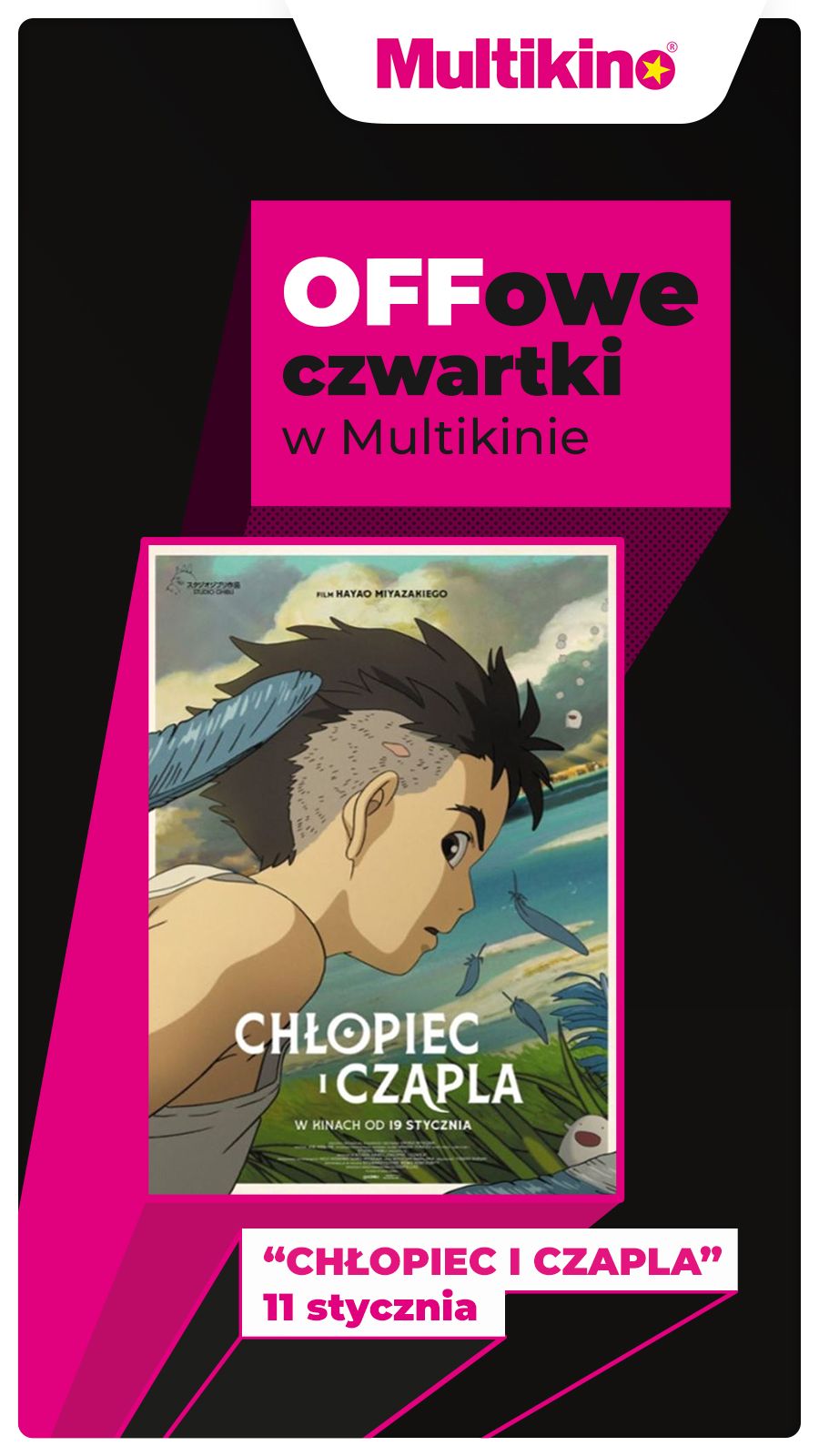 11 stycznia o godzinie 19.00 w ramach cyklu filmowego „OFFowe czwartki” w Multikinie widzowie będąmogli zobaczyć japońską produkcję anime „Chłopiec i czapla”.