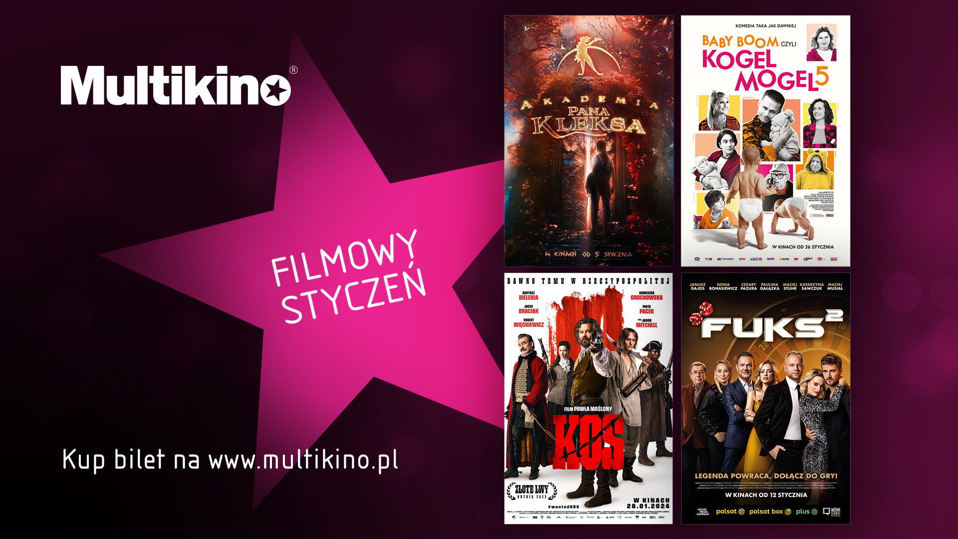 2024 rok w kinach sieci Multikino rozpocznie się od licznych rodzimych premier. Widzowie znajdą w repertuarze między innymi „Akademię Pana Kleksa”, „Fuks 2” oraz film biograficzny „Kos”. Szczegółowy repertuar jest dostępny na stronie www.multikino.pl.