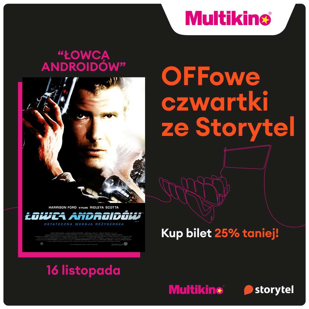 16 listopada o godzinie 19.00 w ramach cyklu filmowego „OFFowe czwartki ze Storytel” w Multikinie widzowie będą mogli zobaczyć „Łowcę androidów” (FINAL CUT Z 2007r.).