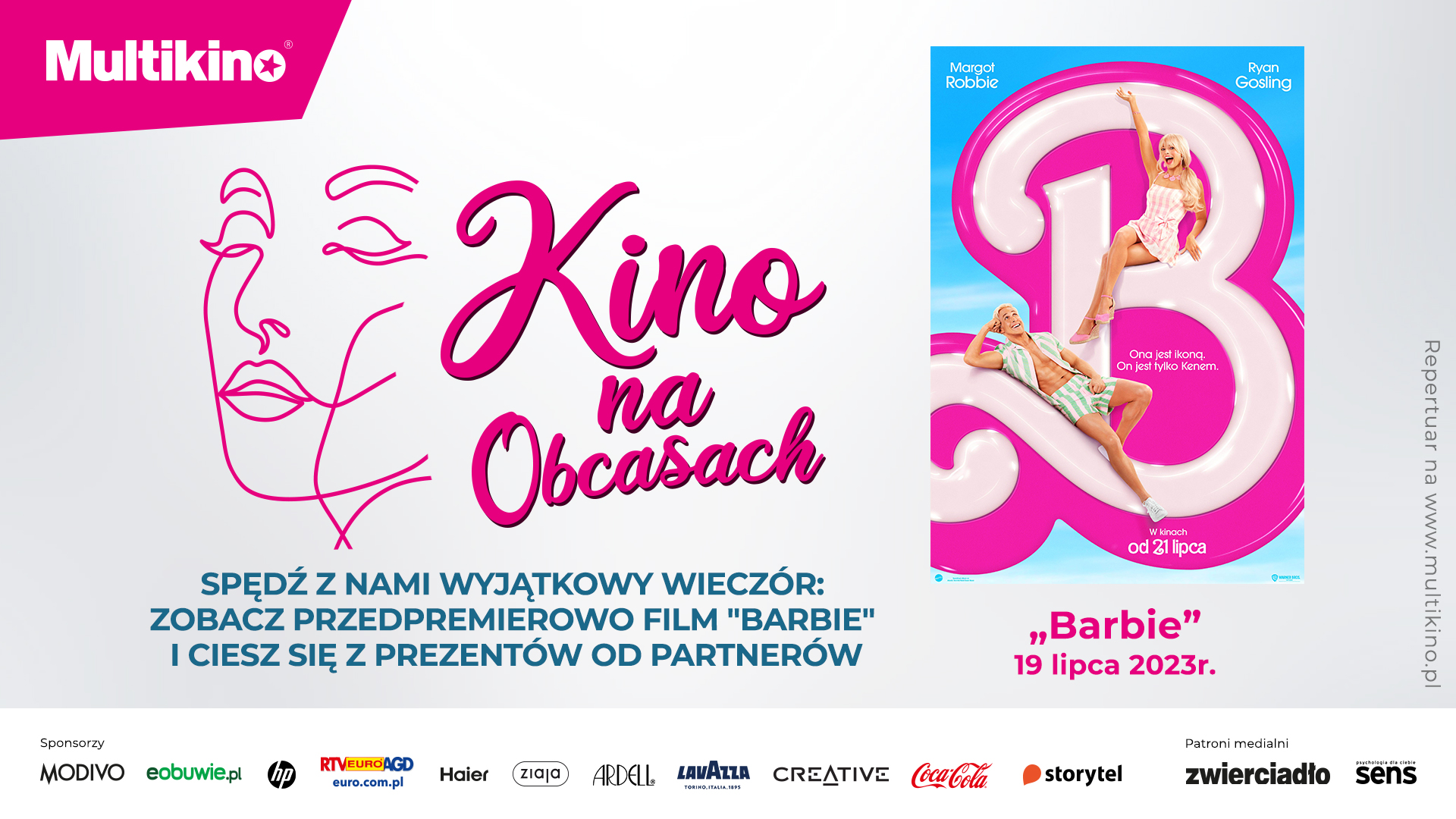 19 lipca podczas seansu filmowego w ramach cyklu „Kino na Obcasach” odbędzie się przedpremierowy pokaz wyczekiwanej produkcji „Barbie” z Margot Robbie i Ryanem Goslingiem. Bilety na lipcowe wydarzenie już są dostępne w kasie kina, na stronie www.multikino.pl oraz w aplikacji mobilnej.