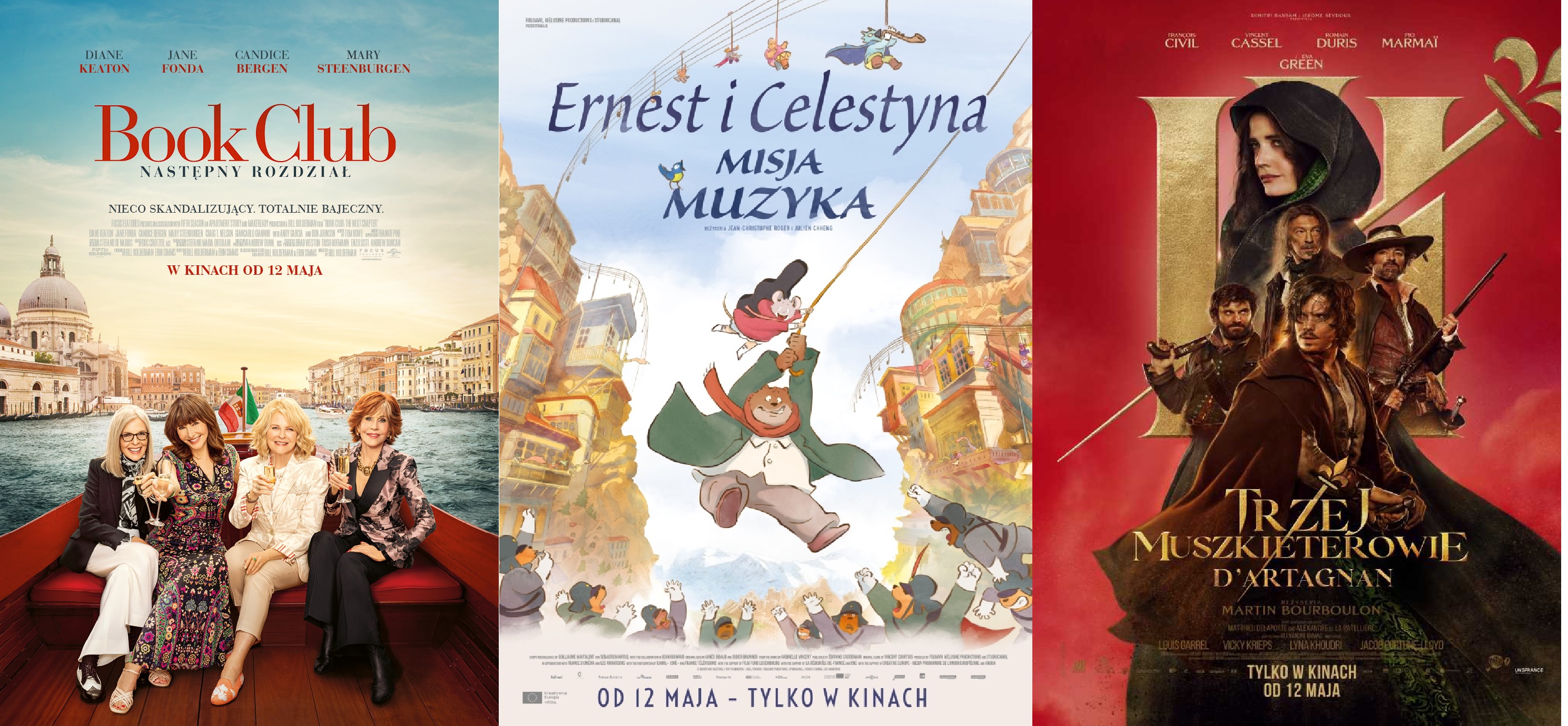 12 maja w kinach sieci Multikino będzie można zobaczyć premierowo „Book Club. Następny rozdział”, „Trzej muszkieterowie: D'artagnan” oraz animację „Ernest i Celestyna: misja muzyka”. Bilety są dostępne w kasie kin, na stronie www.multikino.pl oraz w aplikacji mobilnej.
