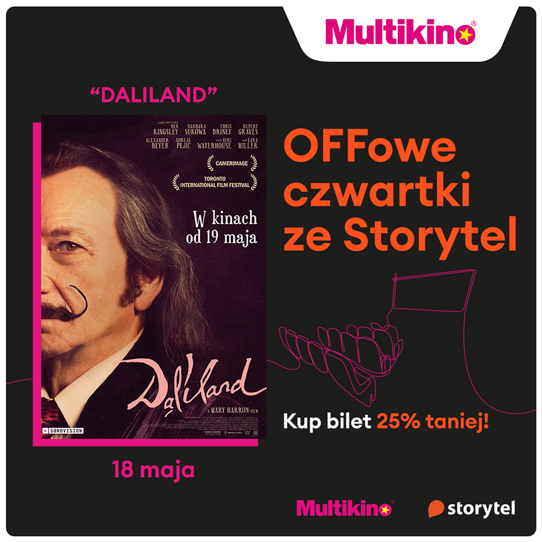 18 maja o godzinie 19.00 w ramach cyklu filmowego „OFFowe czwartki ze Storytel” w Multikinie widzowie będą mogli zobaczyć przedpremierowo „Daliland” o ekscentrycznym mistrzu, który przygotowuje wystawę w Nowym Jorku. Produkcja wejdzie do kin 19 czerwca.