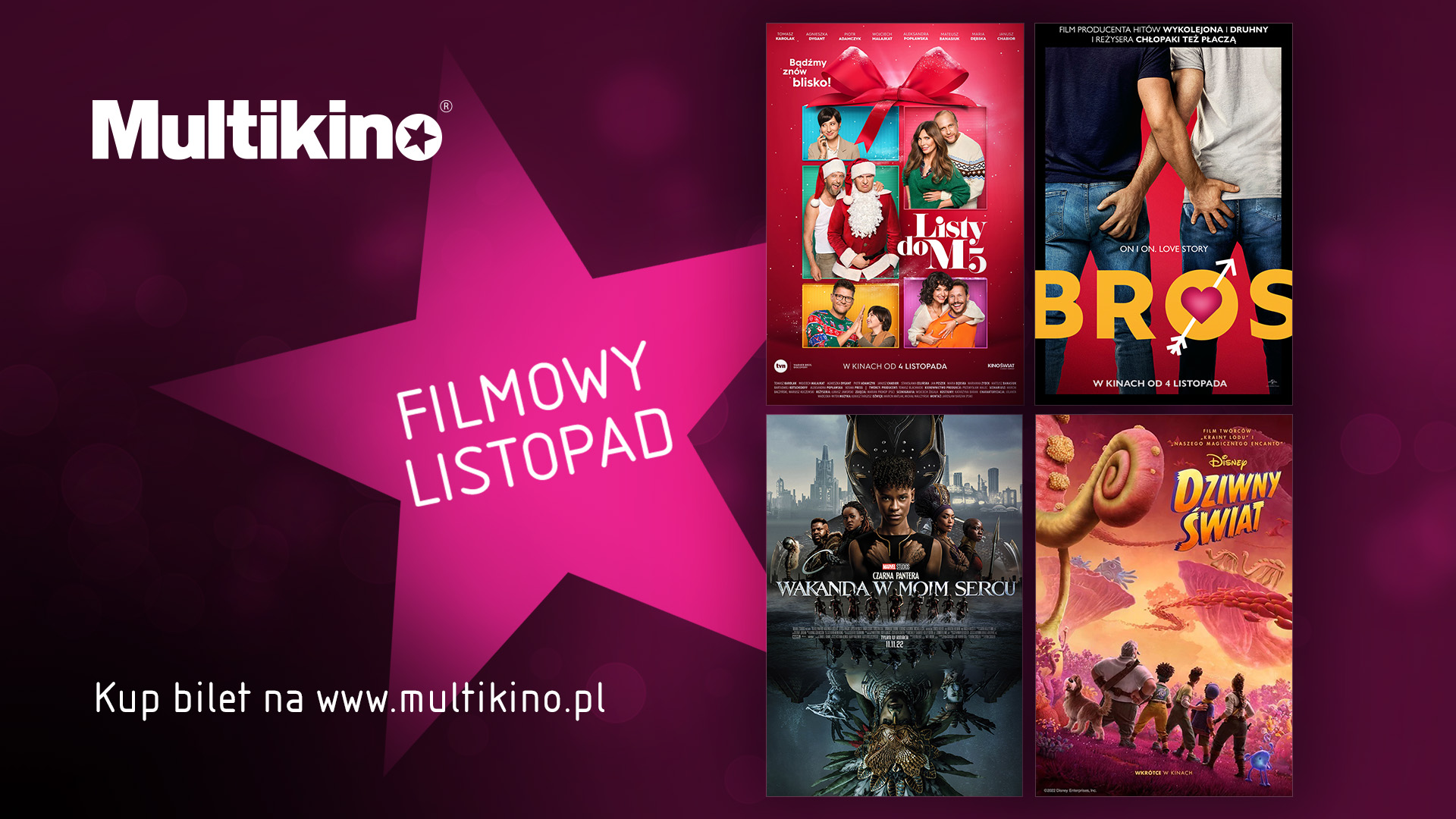 Multikino rozpoczęło przedsprzedaż biletów na dwie komedie romantyczne „Listy do M. 5” i „BROS”. Już dziś kup bilet na filmy, które wejdą na ekrany 4 listopada br. Bilety są dostępne w kasach kin sieci Multikino, na www.multikino.pl oraz w aplikacji mobilnej.