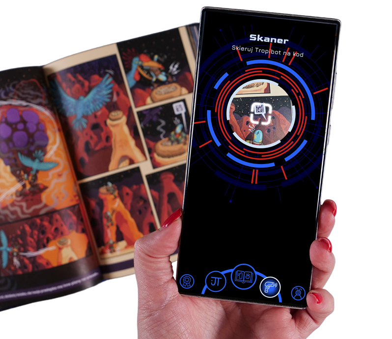 Wyróżnikiem tej gry komiksowej jest niewątpliwie darmowa aplikacja „Tropibot” (do pobrania w Google Play i App Store), która została stworzona specjalnie do tego tytułu. Za jej pomocą gracze skanują zawarte w komiksie kody QR oraz tłumaczą runy rozmieszczone w tekście. Niewątpliwie takie połączenie sprawia, że przygoda staje się wyjątkowa! „Tropicielonauci”, wykorzystują aplikację jako integralną część, która wpływa na fabułę. Dzięki temu, tradycyjna gra książkowa zyskuje nowe, cyfrowe życie. Z pewnością przyciągnie to miłośników tradycyjnych gier, paragrafówek, a także graczy szukających innowacyjnych doświadczeń.