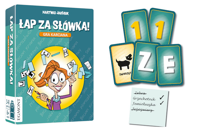 Celem gry jest jak najszybsze znalezienie słowa spełniającego zasady danej rozgrywki. Podczas rundy mamy odkrytą jedną kategorię (na przykład „zwierzęta”, „potrawy” czy „imiona”) oraz dwie litery. Zadanie jest proste – należy znaleźć słowa pasujące do danej kategorii zawierające koniecznie wskazane litery. Wystarczy wytężyć umysł i puścić wodze fantazji, a im dziwniejsze i nietypowe słowa uda się znaleźć, tym lepiej, bo punkty zdobywa się tylko za unikalne wyrazy, których nie zapisali przeciwnicy. Do gry w karcianą wersję „Łap za słówka” zapraszamy osoby powyżej 8 roku życia, a rozgrywki rekomendujemy w gronie od 3 do 8 osób. Pudełko zawiera 30 kart kategorii, 42 karty liter oraz 38 kart punktów. Do gry potrzebne są też długopisy i kartki dla każdego z graczy. Autorem gry jest Hartwig Jakubik, a pomysłodawcami Wolfgang Kramer i Michael Kiesling.