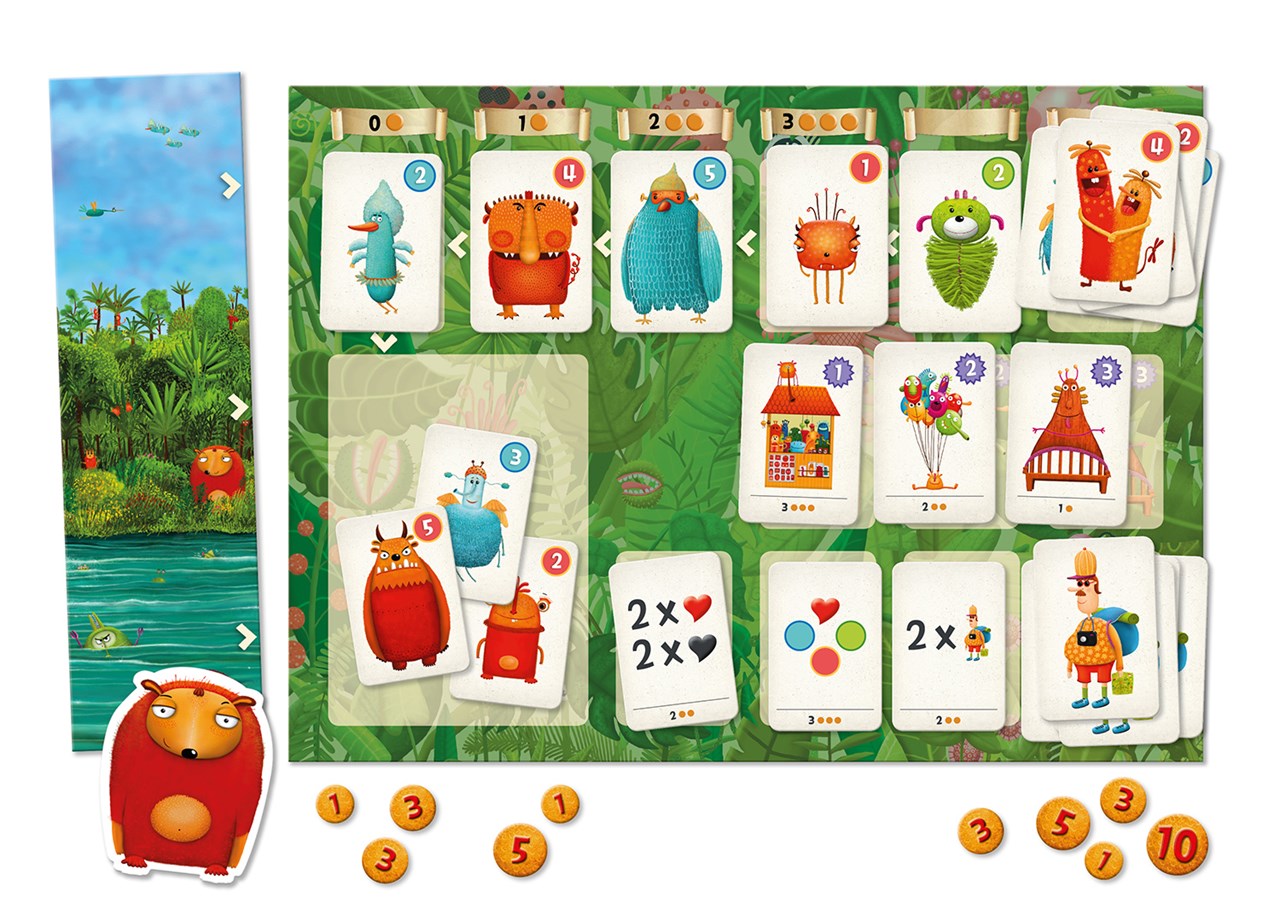 - Kup kartę potwora i umieść ją w odpowiednim miejscu swojego parku lub pobierz 2 monety.
