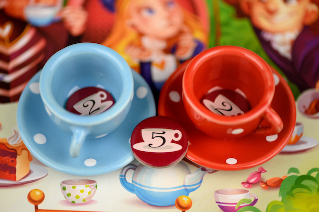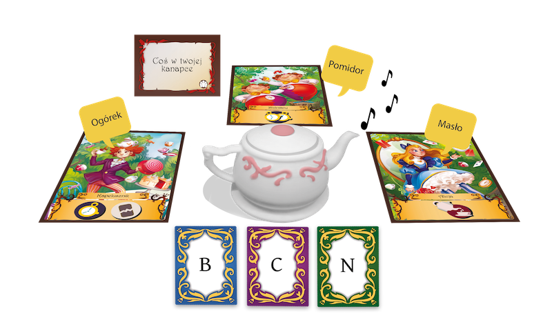 Gracze mają do wyboru aż 8 postaci znanych z powieści „Alicja w Krainie Czarów”, a każda z nich obdarzona jest różnymi zdolnościami. Denerwująca gospodyni przyjęcia, czyli Królowa Kier, jako władczyni Krainy Czarów, może ustanawiać nowe prawa... nawet popijając herbatkę! Biały Królik, czyli posłaniec Królowej Kier, ogłasza jej wszystkie nowe prawa, na czym czasem sam korzysta. Jest też Kot z Cheshire, na którego twarzy zawsze gości szeroki uśmiech. Kot może stać się niewidzialny, co wykorzystuje do płatania figli. Są też Bliźniacy, nierozłączni Dyludyludi i Dyludyludam, którzy oznaczają nie tylko podwójną radość, ale i podwójne kłopoty. Z kolei poważny i małomówny insekt Pan Gąsienica podobno umie zaglądać w przyszłość. Nikt nie wie, czy naprawdę posiada taką moc, czy po prostu przypadkiem trafnie zgaduje. Grzeczna dziewczynka z innego świata, czyli Alicja, w porównaniu z innymi gośćmi wygląda bardzo zwyczajnie. To jednak stawia ją w samym centrum uwagi. Dwójka Kier - Kapitan Gwardii Królewskiej zaproszenie na herbatkę poczytuje sobie za wielki zaszczyt i zrobi wszystko, aby przyjęcie się udało, a zwariowany Kapelusznik może złamać każde prawo, łącznie z czasem.