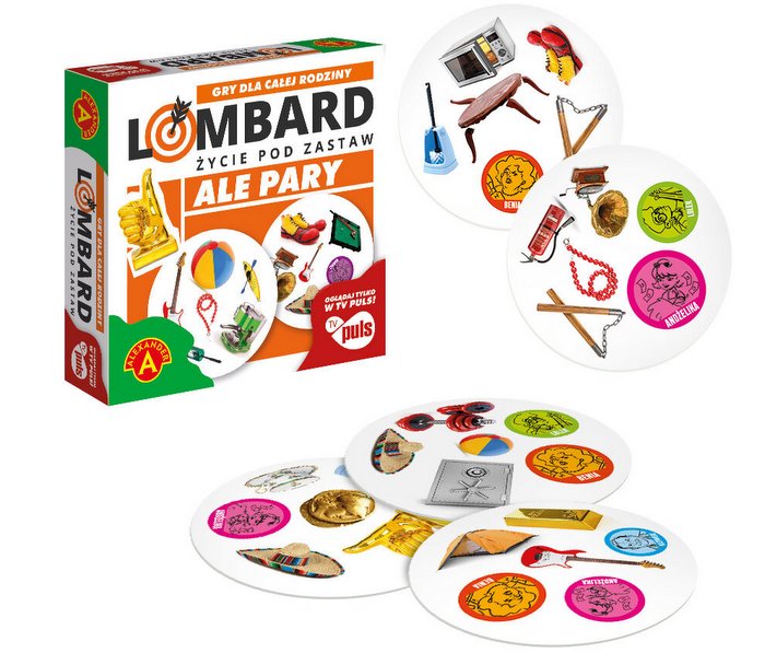 Szybka, prosta gra karciana, w której wygrywa ten kto wykaże się największą spostrzegawczością. W opakowaniu znajdziemy zestaw 31 kart z 6 obrazkami przedstawiającymi wizerunki naszych ulubionych bohaterów z serialu „Lombard. Życie pod zastaw”, znanego z TV Puls, oraz przezabawnymi przedmiotami, które zastawiono w lombardzie.