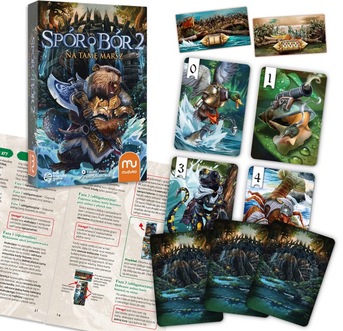 Już pierwsza część zebrała superpozytywne opinie dotyczące wykonania i trudno się temu dziwić. Te karty jak i okładka przyciągają wzrok, obiecują waleczną atmosferę i klimat tajemnicy skrytej wewnątrz prastarego, polskiego boru. Spór o Bór 2. Na tamę marsz!, zabiera z kolei graczy na tereny podmokłe. Tu w rzecznych głębinach spotkać można elektryczne węgorze i uzbrojone sumy. Gdzieś na liściach spokojnie czeka ślimak, gotowy do użycia armaty położonej na muszli, a rzęsorek rzeczek przygotowuje już swoje pokryte trucizną sztylety. Zdecydowanie czuć spójność z serią, a jednocześnie wodne środowisko wniosło do gry wystarczająco dużo świeżości, by przyciągnąć do siebie zarówno nowych graczy jak i fanów pierwowzoru.