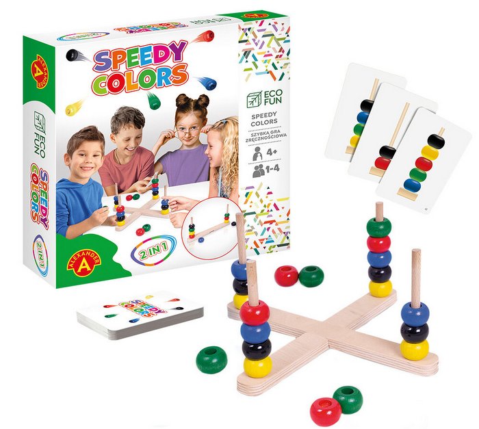 Umiesz zapanować nad presją czasu? Dasz radę wyprzedzić pozostałych graczy? Na hasło SPEEDY COLORS układaj koraliki w odpowiedniej kolejności. Odwzoruj układ kolorów z karty lub z pamięci.
