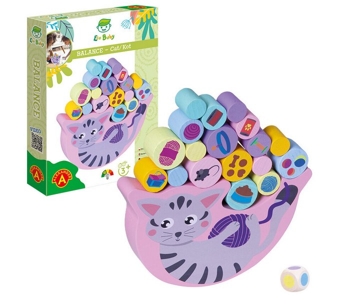 Dzięki specjalnie wyciętemu kształtowi zabawka przechyla się pod wpływem nakładanego ciężaru. Zabawa polega na tym, aby ułożyć wszystkie walce na bazowym kształcie.
