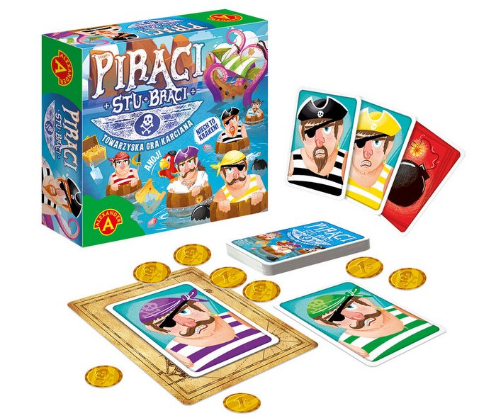 „Piraci – stu braci” to szybka gra towarzyska, w której tak samo jak na morzu, liczy się refleks, bystre oko i spostrzegawczość.