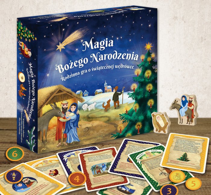 Czy wiesz, dlaczego na Boże Narodzenie zapala się świece? Dlaczego na święta ubieramy choinkę? Ile kilometrów musieli przejść Maryja i Józef w drodze z Nazaretu do Betlejem? “Magia Bożego Narodzenia. Rodzinna gra o świątecznej wędrówce” to pięknie wydana planszówka dla całej rodziny, która przybliża uczestnikom tradycje świąteczne i historię wędrówki Maryi i Józefa. Gracze mają okazję dołączyć do Świętych i pomóc im w dotarciu do Betlejem zbierając dary, które po drodze zgubili Trzej Królowie i nieostrożni pasterze. Idealny pomysł na prezent pod choinkę dla najbliższych.
