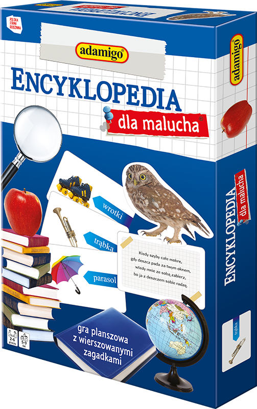 Encyklopedia dla malucha to zestaw rymowanych zagadek i przedmiotach i zjawiskach z codziennego życia człowieka. Proste zasady gry i atrakcyjna forma rozrywki sprawią wiele radości i pomoą dziecku w rozwoju.
