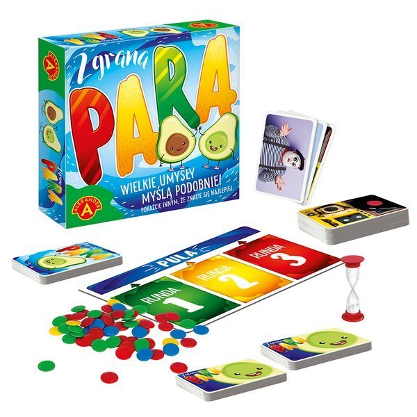 Sprawdźcie jak bardzo jesteście zgrani. Szybka rozgrywka dla par, w której wykładamy na stół obrazki. Każda osoba w parze musi wybrać z tali obstawiania przymiotnik. Ten przymiotnik w zależności od rundy musi najbardziej lub najmniej pasować do danego obrazka. Wygrywa ta para, która najczęściej będzie wykładać identyczne przymiotniki i okaże się najbardziej zgrana.