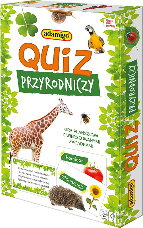 Gra planszowa z wierszowanymi zagadkami, która świetnie wprowadzi dziecko w świat flory i fauny. Rymowane zagadki w przystępnej formie pomogą dziecku zaznajomić się z tematyka przyrody. Grę można odbywać w formie prostszej, jak i trudniejszej tak, aby każdy dostosował poziom do swoich umiejętności i pewności!