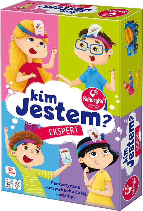 „Kim jestem? EKSPERT” to mniejsza wersja znanej i lubianej gry z trudniejszymi hasłami. Gra uczy logicznego myślenia, precyzyjnego formułowania myśli i analizowania zdobytych informacji. Dodatkowo, możesz sam wymyślić hasło i zapisać je na pustej karcie!
