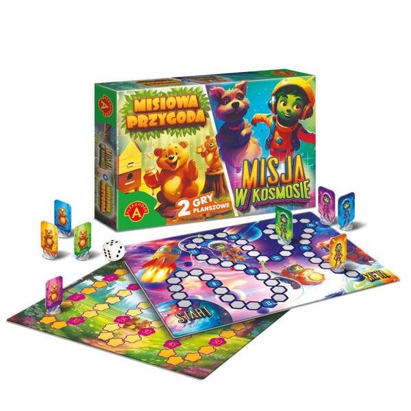 Dwie proste planszówki wprowadzające najmłodszych w świat gier. Klasyka w nowym wydaniu – atrakcyjna nowoczesna grafika, kolorowe tekturowe pionki.