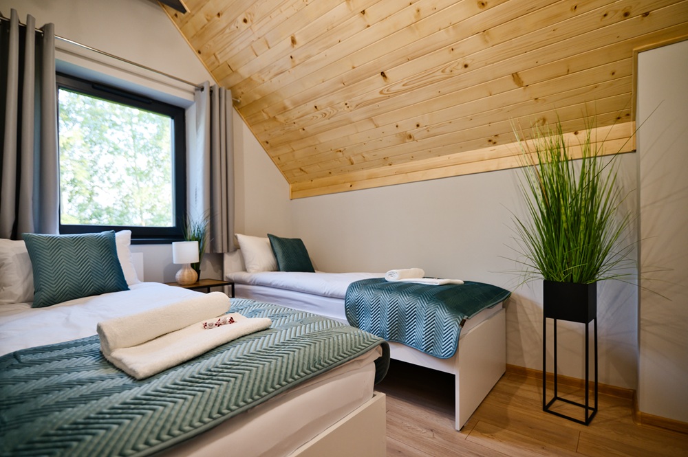 Kompleks domków 4/6-cio osobowych oferujący wszystko, co niezbędne do komfortowego wypoczynku po aktywnie spędzonym dniu.