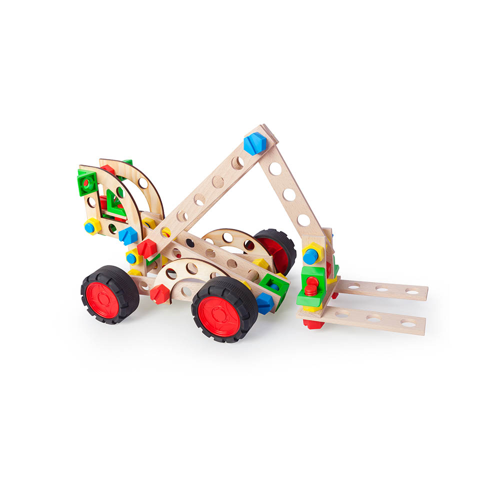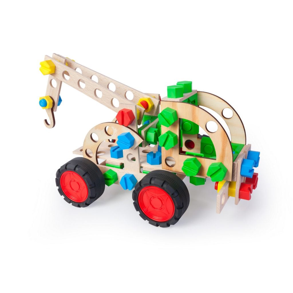 Mały Konstruktor Junior to ponadczasowa zabawka do samodzielnego montażu skierowana do dzieci w wieku od 4 lat. Zestaw składa się z drewnianych deseczek z dziurkami oraz kolorowych śrubek i łączników z tworzywa. Duże rozmiary elementów oraz uproszczona konstrukcja sprawiają, że dzieci już od najmłodszych lat mogą próbować sił w składaniu pierwszych pojazdów.