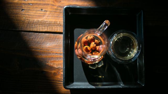 Cascara świetnie smakuje również na zimno, podana z kostkami lodu i owocami cytrusowymi.