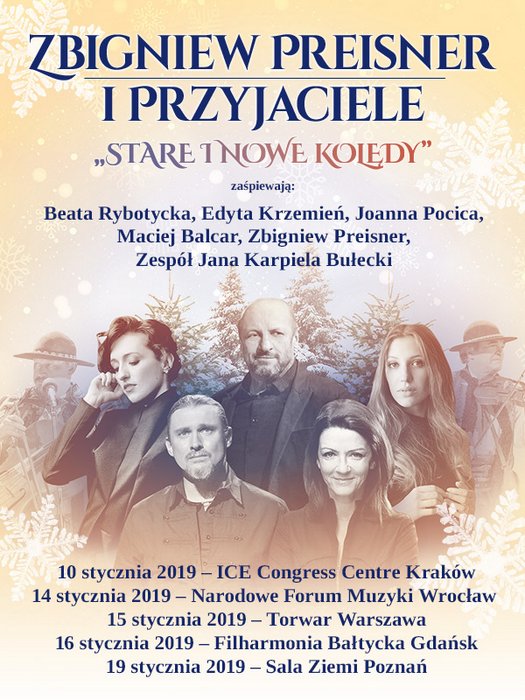 Osiemnaście lat temu Zbigniew Preisner wydał „Moje Kolędy” - limitowaną edycję albumu z kolędami, przy realizacji której pracowały gwiazdy i duże składy instrumentalne: orkiestra Sinfonia Varsovia, Leszek Możdżer na fortepianie, Andy Pask i John Parricelli, Chór Chłopięcy Filharmonii Krakowskiej. Śpiewali m.in. Elżbieta Towarnicka, Beata Rybotycka, Jacek Wójcicki i zespół góralski „Zakopiany”. W 2015 roku kompozytor dodał do albumu siedem kolejnych, nowych kolęd. Wydawnictwu nadano tytuł. „Nowe i stare kolędy. W poszukiwaniu dróg” z tekstami Ewy Lipskiej i Jana Nowickiego. Właśnie ten repertuar zostanie zaprezentowany na pięciu specjalnych wieczorach kolęd w styczniu 2019 roku.